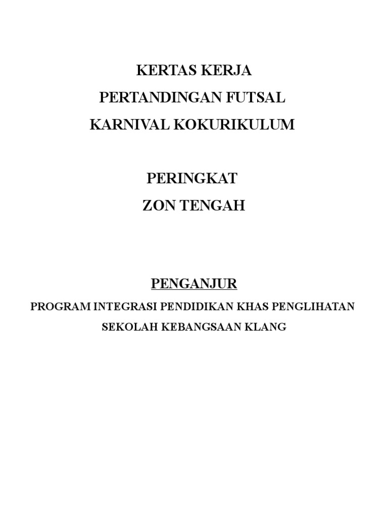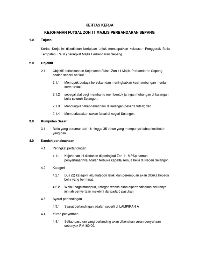 Muhammad Miftahuddin Bin Moh Nawi Pensyarah. Futsal ii kertas kerja kejohanan futsal student name. Ya kertas kerja ini boleh digunakan untuk dibentangkan dengan mana-mana agensi kewangan.